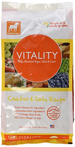 We crafted Vitality dry dog food to provide proactive holistic wellness and help your dog live a long, healthy and happy life. Our recipe combines high quality chicken, wholesome fruits and veggies and other nutritious ingredients to help keep your dog’s eyes bright and skin and coat healthy. It’s end-of-the-nose to tip-of-the-tail food nutrition. Because healthy dogs are happy dogs- and happy dogs are what we’re all about.DAILY FEEDING GUIDELINES: Dog Weight (lbs) Dry Food (cups) 10 or less ¼ - 1 11 - 20 1 - 1 ¼ 21 - 40 1 ¼ - 2 41 - 60 2 - 2 ½ 61 - 80 2 ½ - 3 81 - 100 3 - 3 ½ 101 - 120 3 ½ - 4 FOR DOGS OVER 120 LBS: Add ¼ cup per additional 10 lbs. FOR PUPPIES: Feed 25% more than listed on the chart. FOR GESTATING AND LACTATING DOGS: Food consumption may be more than double during this period. Based on a standard 8 oz measuring cup. Fresh water should be available at all times. Optimal feeding amounts may vary with age, size, breed, and activity level. Please use the feeding guidelines as an initial recommendation and adjust food amount as needed. DAILY FEEDING GUIDELINES: Dog Weight (lbs) Dry Food (cups) 10 or less ¼ - 1 11 - 20 1 - 1 ¼ 21 - 40 1 ¼ - 2 41 - 60 2 - 2 ½ 61 - 80 2 ½ - 3 81 - 100 3 - 3 ½ 101 - 120 3 ½ - 4 For dogs over 120 lbs: Add ¼ cup per additional 10 lbs. For puppies: Feed 25% more than listed on the chart. For gestating and lactating dogs: Food consumption may be more than double during this period. Based on a standard 8 oz measuring cup. Fresh water should be available at all times. Optimal feeding amounts may vary with age, size, breed, and activity level. Please use the feeding guidelines as an initial recommendation and adjust food amount as needed. Salmon, Menhaden Fish Meal, Peas, Chickpeas, Salmon Meal, Dehydrated Alfalfa Meal, Sunflower Oil (Preserved With Mixed Tocopherols), Flaxseeds, Pea Starch, Salmon Oil (Source Of DHA), Natural Flavors, Dried Egg Product, Dried Tomato Pomace, Dried Carrots, Dried Cranberries, Dried Apricots, Minerals (Zinc Proteinate, Iron Proteinate, Copper Proteinate, Manganese Proteinate, Cobalt Proteinate, Sodium Selenite), Vitamins (Choline Chloride, Vitamin A Supplement, Vitamin D3 Supplement, Vitamin E Supplement, Niacin, d-Calcium Pantothenate, Pyridoxine Hydrochloride, Thiamine Mononitrate, Riboflavin Supplement, Folic Acid, Vitamin B12 Supplement), Rosemary Extract.Chicken, Chicken Meal, Oats, Barley, Peas, Brown Rice, Natural Flavor, Chicken Fat (Preserved with Mixed Tocopherols), Flaxseed, Dehydrated Alfalfa Meal, Potassium Chloride, Dicalcium Phosphate, Tomato Pomace, Sweet Potatoes, Carrots, Apples, Blueberries, Garlic Powder, Dried Chicory Root, Taurine, Yeast Culture, Minerals (Zinc Proteinate, Iron Proteinate, Copper Proteinate, Manganese Proteinate, Cobalt Proteinate, Sodium Selenite), Vitamins (Choline Chloride, Vitamin A supplement, Vitamin D3 supplement, Vitamin E supplement, Niacin, d-Calcium Pantothenate, Pyridoxine Hydrochloride (source of vitamin B6), Thiamine Mononitrate, Riboflavin Supplement, Folic Acid, Vitamin B12 Supplement), Lactobacillus casei Fermentation Product Dehydrated , Lactobacillus acidophilus Fermentation Product Dehydrated, Bifido bacterium thermophilum Fermentation Product Dehydrated, Enterococcus faecium Fermentation Product Dehydrated, Rosemary Extract.Feature