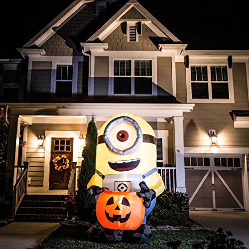 -. Color : Multi -. EAN : 0086786727355 -. Feature : Stands 8' Tall X 5' Wide / Internally LED Lighted For Nighttime Display. / Comes With Built in Fan Motor, Yard Stakes & Tether Ropes. / Self Inflates!! Just Plug Into Any 110 AC Outlet. / Made By Gemmy. -. Label : Gemmy -. Manufacturer : Gemmy -. ProductGroup : Lawn & Patio -. ProductTypeName : OUTDOOR_LIVING -. Publisher : Gemmy -. Studio : Gemmy -. Title : Halloween Inflatable Giant 8' LED Minion Carl Holding Pumpkin -. UPC : 086786727355