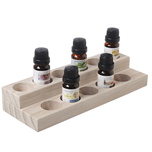 2-Tier Natural Wood Essential Oil Display Stand, Cosmetic Organizer Rack - Holds up to 11 (20ml) Bottles