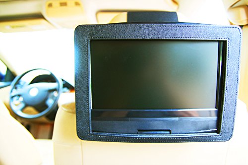 - Feature : **THE ONLY CAR DVD PLAYER HEADREST MOUNT ON THE MARKET WITH MULTIPLE MOUNTING OPTIONS** **PLEASE REVIEW THE PICTURE GALLERY FOR ALL MOUNTING OPTIONS AND EXACT DIMENSION OF OUR 9" HEADREST MOUNT** Patent pending convenient DROP-IN pocket design provides INSTANT mounting & dismounting without the need of unscrewing or detaching parts / Fit most 9" Portable Dvd Player & Build with high quality heavy duty material wrap around the unit, eliminate any possibility of unit sliding off / Turning portable DVD player or Tablet into an In-Car or Airplane-Entertainment System instantly / Headrest mount has two setup option (Can be mounted on traditional headrest with two headrest adjustable poles or one piece car seat which does not have any headrest adjustable poles) (Please see all nine pictures for details) and completely detachable extra long and wide elastic velcro strap allowing user to rotate strap or mount freely / Patent Pending detachable side elastic allow user conveniently adjust the thickest of the headrest mount. Giving user the flexibly of fitting different DVD player thickness