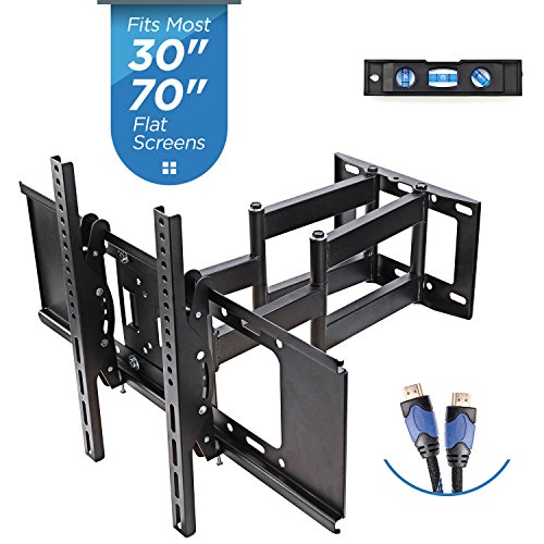 -. Binding : Electronics -. Brand : Basics Hardware -. EAN : 0854894007177 -. Feature : Discreet and intelligently thought to fit most flat-panel TVs from 32" to 70"; includes high-speed HDMI cable / Universal design, fits flat-panel TV VESA hole pattern from 200X100 to 600x400 - see full compatible faceplate below / Versatile: 15-degree tilt and 180-degree swivel will give you maximum viewing flexibility with the perfect angle to view the screen from anywhere in the room / Robust TV mount on a tough steel structure with weight capacity of 132 lbs./ 60kg; extendable up to 16" from the wall / Easy installation with comprehensible instruction and all included hardware in pre-labeled bags. Post-installation adjustment allows perfect TV leveling. Comes with complementary HDMI cable -. Label : Basics Hardware -. Manufacturer : Basics Hardware -. Model : X0640B -. MPN : X0640B -. PackageQuantity : 1 -. PartNumber : X0640B -. ProductGroup : Speakers -. ProductTypeName : AV_FURNITURE -. Publisher : Basics Hardware -. Studio : Basics Hardware -. Title : TV Wall Mount with Dual Articulating Extension Arm, Tilt, Swivel and Rotation for 32-70” TVs -. UPC : 854894007177