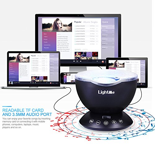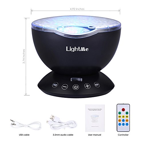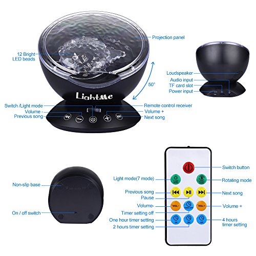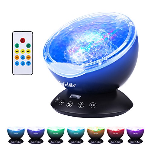 LightMe Colorful Ocean Wave Projector, Touch Sensor 12 LED & 7 Color Night Lights with 4 Hypnotic Musics & Remote Control in Living Room Bedroom for Baby Kids Adults(Black)