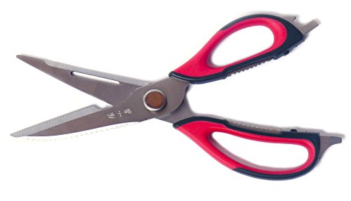These precision utility shears, while not expensive, will quickly become your kitchen favorites. They are extra heavy duty, and can be used for all types of cooking tasks. They will cut chicken, herbs and vegetables, as well as crack nuts or open small jars. There's also a bottle cap opener and a screwdriver. Open 90-Degrees to take apart for cleaning. When the two halves are separated, you'll have a serrated edge that's ideal for fish scaling. Another slotted edge is used for paring carrots, potatoes and other vegetables. They are quite sharp and have a smooth, precise action unmatched by many. About this 350 year old company: Zhang Xiaoquan opened its doors during the Qing dynasty during Emperor Kangxi's reign in 1663 AD. The brand was designated for imperial use in the Qing Dynasty court and got a special award from Emperor Qianlong. The age-old forging techniques of Zhang Xiaoquan Scissors have been included in the list of China's intangible cultural heritage.