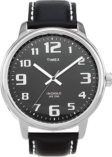 -. Title : Timex® Men's Black Leather Easy Reader Watch #T28071