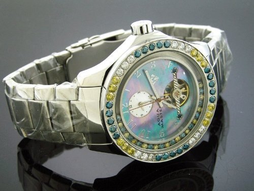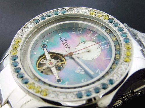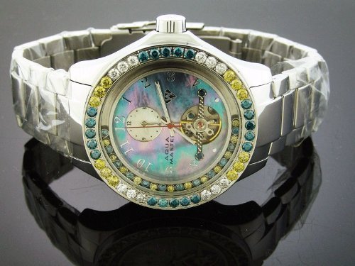 -. Title : New Aqua Master Rare 5.75ct Big Canary Diamonds Automatic Watch Blue M-o-p Face