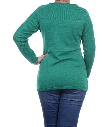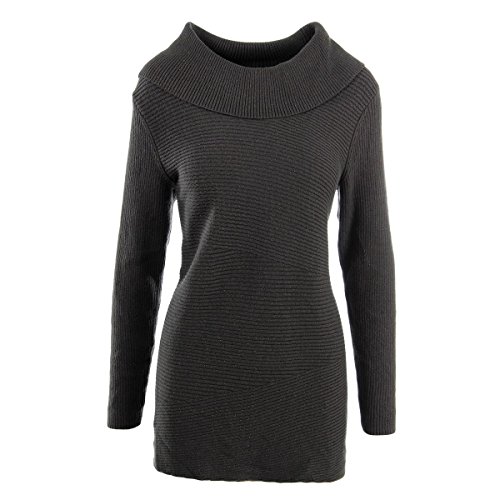 Sweater features no lining, cowl neck, long sleeves, metallic cotton blend fabric, and pullover style.