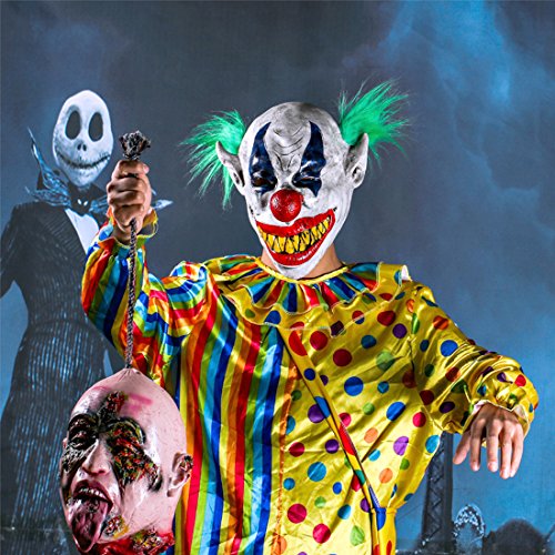 Hyaline&Dora Halloween Latex Clown Mask With Hair for Adults,Halloween Costume Party Props Masks (green hair) (green hair)