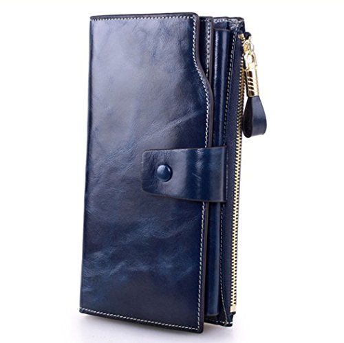 -. Title : KorMei Damen groß Kapazität Luxus Wachs echtes Leder Geldbörsen mit Reißverschluss-Tasche(Geschenk Verpackung)
