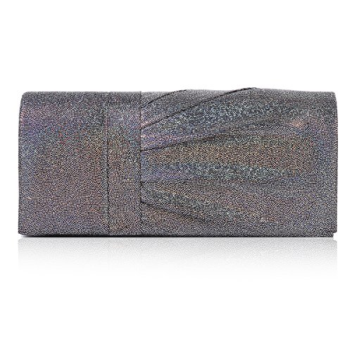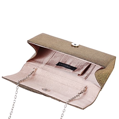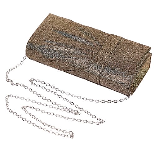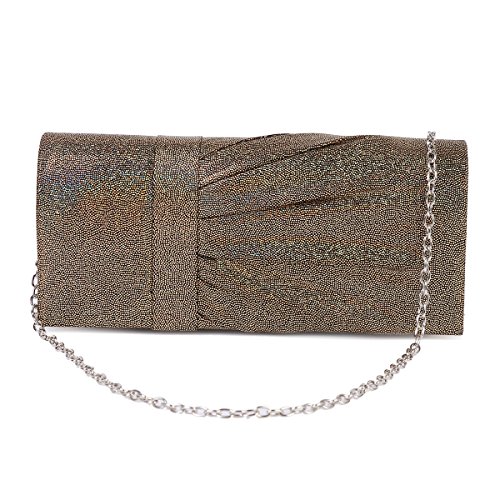 Product Description Carry a few essential items for a formal event or a social occasion in this glitzy rectangular flap clutch.The evening clutch features?pleated?allover glitter fabric and has a structured shape with a flap front design and a secure snap closure.This sparkling little clutch offers just enough room for your cell phone, lipstick, and one or two other small accessories.An interior slide pocket offers storage for your cash, credit cards, and photo ID while a chain link offers a versatile way to carry this clutch when you want to have your hands free to meet and greet friends.Purse measurement is app 20x9x4.5cm (7.87x3.54 x1.77 in), chain length is app 120cm(47.24inch).?NOTE:Different people with different measurement,so it may exist 2-3cm measurement errors.Hope you will not mind it. 0