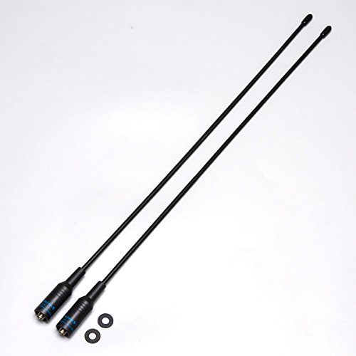 Specifications: Frequency: 144/430MHz Gain: 2.15dBi Max power: 10 Watts VSWR : Less 1.5:1 Impedance: 50 OHM Connector: SMA-F Length: 39.6 cm (~15.6 inches) Impedance : 50 ohms RoHS Compliant