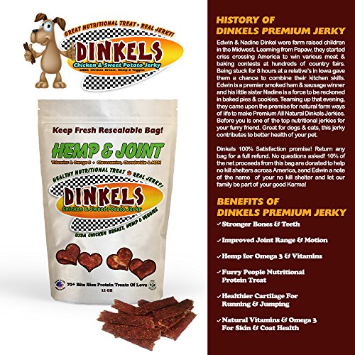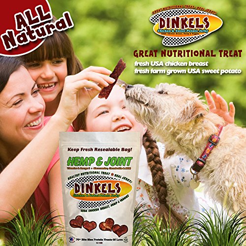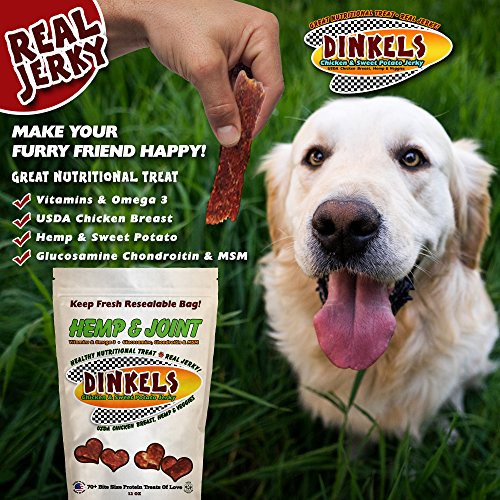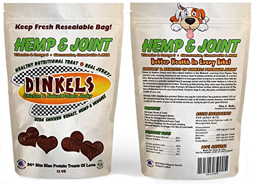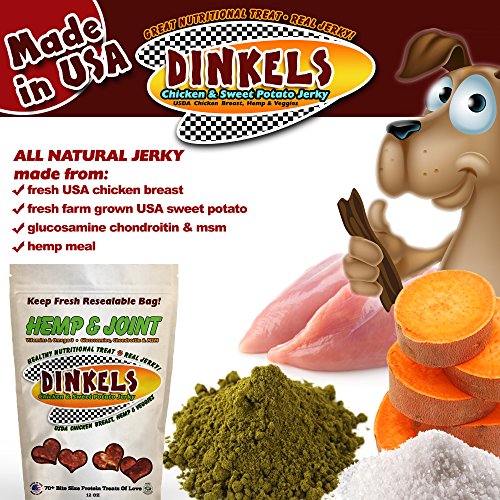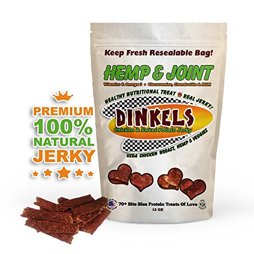 -. Title : NUTRITIONAL HANDCRAFTED h.e.m.p & JOINT DOG JERKY! 12oz 70+ love size bites of natural family style dog jerky with Organic h.e.m.p. Hip, Joint, and Fur Benefits. USDA Chicken Breast Sweet Potato Dog Jerky.
