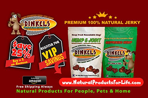 -. Feature : ☑️ ALL NATURAL TAIL WAGGING DOG JERKY! NO FILLERS! USDA Chicken Breast, Sweet Potato, Vitamins and Omega 3 from h.e.m.p, Hip & Joint Premium Dog Jerky! / ☑️ FREE SHIPPING ~ GREAT DOG JERKY with REAL BACON FLAVOR & Omega 3 from h.e.m.p, and crunchy chewy treat / ☑️ DINKELS DOG JERKY DELIVERS! Yummie nutritional value with hip & joint benefits in every bite. 70+ mouth watering bites in a bag. / ☑️ OLD SCHOOL HANDCRAFTED HUMAN GRADE! slow baked, and 50% Sweet potato, with health in mind. / ☑️ HIP & JOINT BENEFITS Glucosamine, MSM, and Chondrotin! h.e.m.p for Fur and coat, and vitamins.