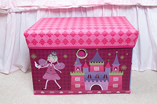 Fairytale Princess Castle Collapsible Storage Organizer by Clever Creations | Storage Ottoman for Bedroom and Living Room| Perfect Size Chest for Books, Clothes, Electronics, and Gadgets