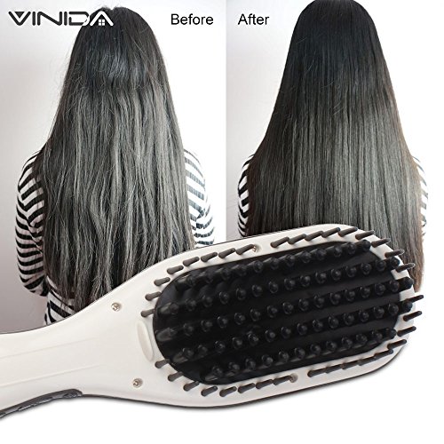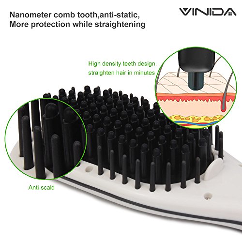 Hair Straightener Brush, Ceramic Heating Straightening Comb with Anti-Scald Design & Adjustable Temperature for All Type of Hairs