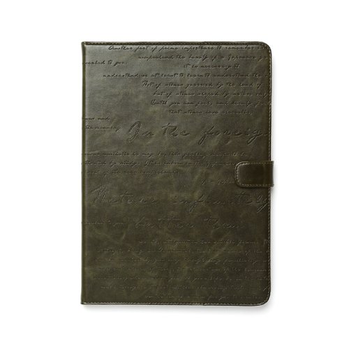 Zenus Lettering Diary Synthetic Leather Carrying Case with Folio Kickstand for iPad Air, Deep Khaki (APPD5-MLTDY-DK)