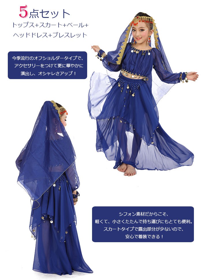 【5点セット】ベリーダンス アラビア ヒップスカーフ ダンス衣装 ベリーダンスパンツ ベール ヘッドドレス スパンコール ダンサー 衣装 コスプレ衣装 belly dance アラジンコスチューム ベリーダンス衣装 ハロウィーン コスチューム cosplay ★セット内容:トップス+スカート+ベール+ヘッドドレス+ブレスレットの5点セット★カラー:バラ色 赤色 紫色 水色 ネイビー 黄色(写真参考)※お客様ご使用のPC環境により商品画像のカラーが多少異なる場合があります。仕入時期により多少デザインなど異なる場合があります。ご了承ください。★サイズ:(CM):Sサイズ: 参考身長120-140cmLサイズ: 参考身長141-155cm※サイズは人の手によって測っているため、1-3cmの誤差がある場合がございます。予めご了承下さいませ。