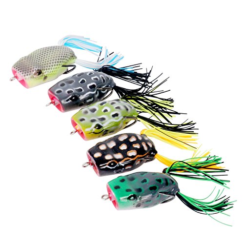 -. Title : RUNCL Topwater Frog Lures, Soft Fishing Lure Kit with Tackle Box for Bass Pike Snakehead Dogfish Musky (Pack of 5)