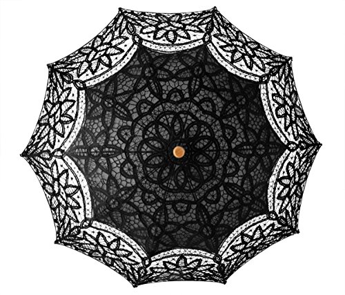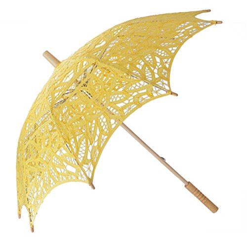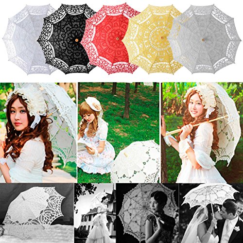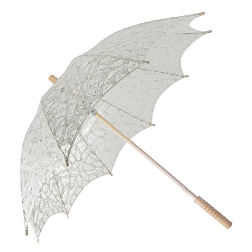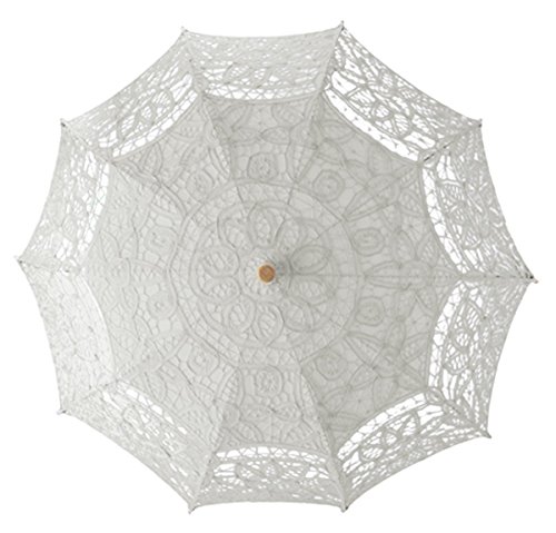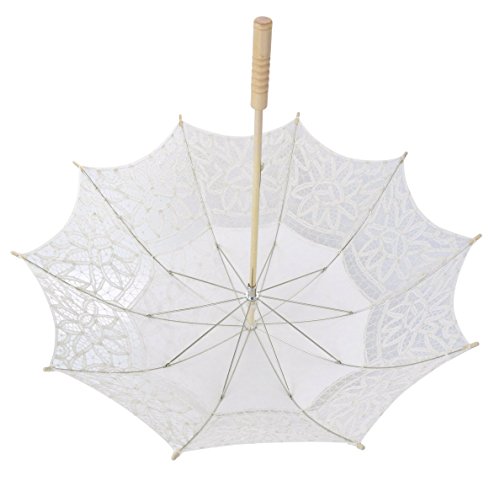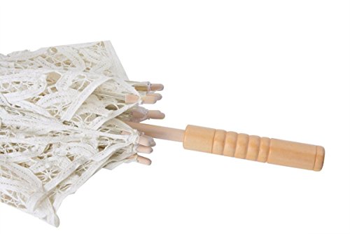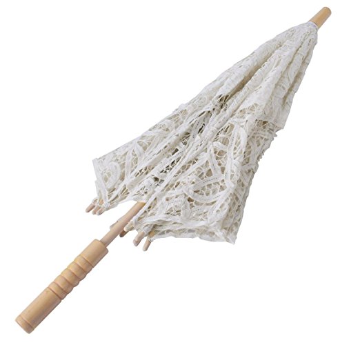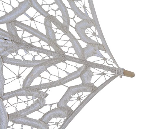 -. Feature : Lace cotton / Length:25.6"(65cm)when closed. / Diameter:30"-31.5"(76-80cm)when open. / Handmade battenburg lace,vintage,elegant and classic,NOT Waterproof. Straight wooden handle and shaft in a natural wood color. / Suitable for photography, costume party, bridal party, wedding, church, cocktail party and tea party.