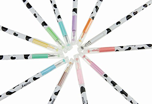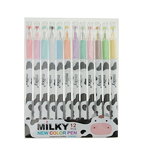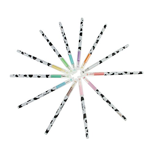 Clobeau Cartoon Diamond Head Fineline Assorted Colors Pens Set of 12-pcs Coloring Rollerball Pens 0.38mm School Office Supplies Gel Ink Pen Anti Skip for Drawing Adult Coloring Book
