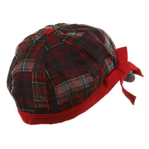 Title : Youth Twill Plaid Newsboy Cap - Red Navy