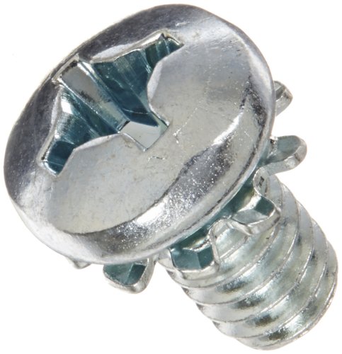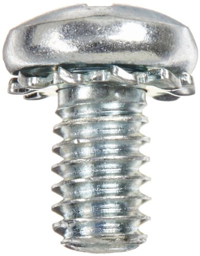 Steel Pan Head Machine Screw With External-Tooth Lock Washer, Zinc Plated, Meets ASME B18.13, #3 Phillips Drive, #12-24 Thread Size, 3/8" Length, Fully Threaded, Imported (Pack of 100)