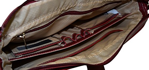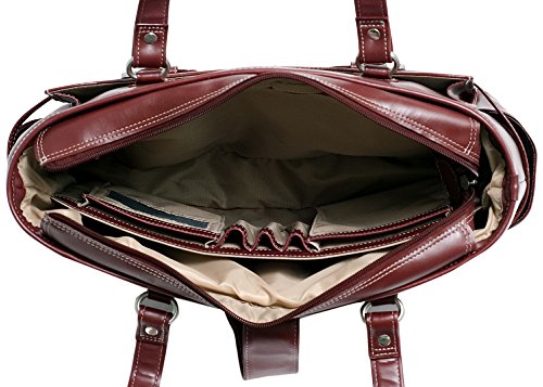 -. Binding : Electronics -. Brand : McKleinUSA -. Color : Red -. EAN : 0758576909202 -. Feature : Made of high quality stylish genuine Italian leather / Main compartment is fully lined and includes a tablet pocket, an interior zippered pocket, an interior organizer for pens, business cards and small devices, plus a built-in high-density compartment protects laptops up to 15.6"in screen size / Front pocket with a magnetic snap holds small accessories. Back open top side to side pocket. / Two side pockets for small miscellaneous items / Product dimensions: 16.5"W x 11.75"H x 5"D. Laptop compartment dimensions: 15"W x 11"H x 2"D -. ProductGroup : PC Accessory -. ProductTypeName : CARRYING_CASE_OR_BAG -. Title : McKlein USA Genuine Leather Women's Briefcase - 15.6" Laptop Business Tote Red -. UPC : 758576909202
