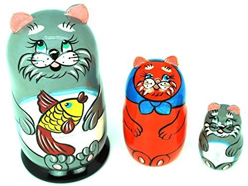 -. Title : Russian Hand Painted Gray Cats Kittens Nesting Dolls Set 3 pc, 5"