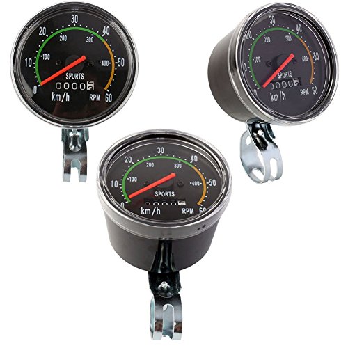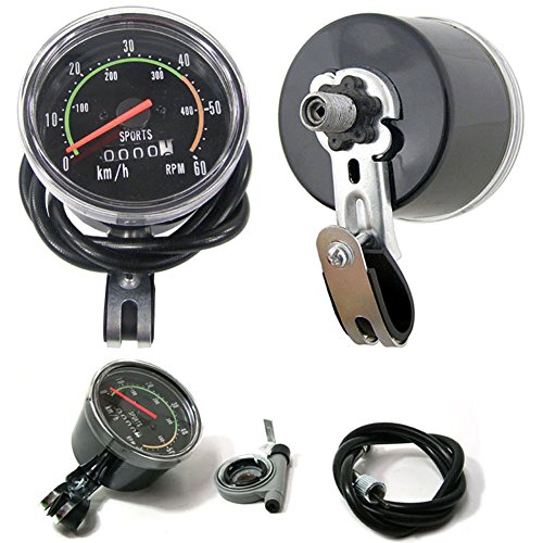 This Bike Engine Analog Speedometer tracks the speed of your motorized bike, and even a bicycle. Classic RPM Bicycle Speedometer. Speed in RPM Odometer / 26 ~ 27inch Wheels. Chrome Bezel Old School Style Bicycle Speedometer. Installation is simple- just mount the rotor in between your wheel and fork, attach the cable from the rotor to your speedometer, mount the speedometer and you're ready to roll. The reset knob on the side lets you reset the total mileage on the speedometer as simple as any other speedometer around. Connecting "L" is Resettable,Speed in RPM,Bayonet size is about 2cm. It is a device in a bicycle/ bike which shows speed(km/h), mileage(km) 0