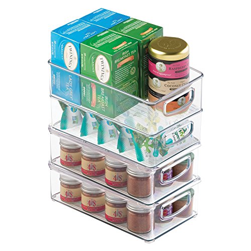 mDesign Kitchen Cabinet and Pantry Storage Organizer Bins - Pack of 4, Shallow, Clear