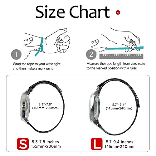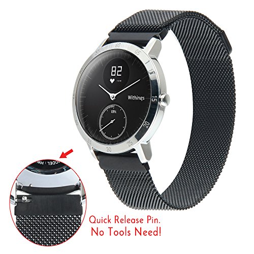 Size: Fits 5.7"-9.4"(145-240mm) wrist. Replacement Milanese Magnetic Loop Watch Band to dress up your 20mm (40mm Case) Withings Steel HR. Does Not Fit (36mm Case) Withings Steel HR Heart Rate Monitor / Tracker