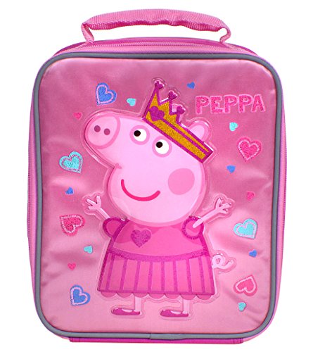 [Product Information]- Peppa insulated lunch box with Peppa pig wearing a crown on a pink background