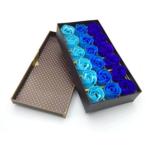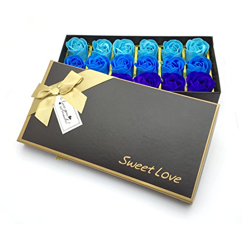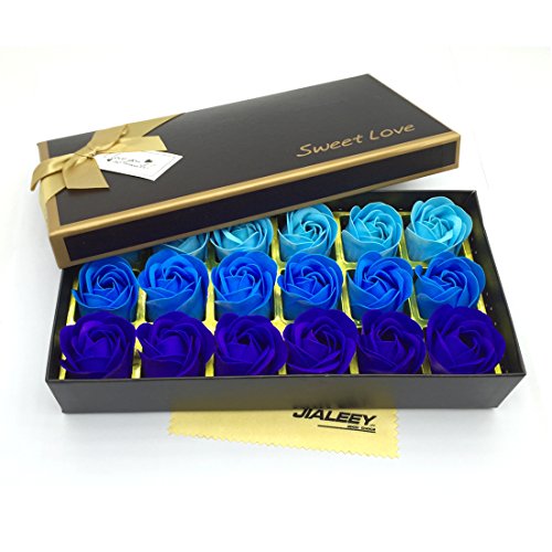 Floral Scented Bath Soap Rose Flower Petals,JIALEEY Plant Essential Oil Rose Soap Set Guest Soap shaped Petals Best Gifts Ideas for Her Women Teens Girls Mom Birthdays, 18 PCS Blue