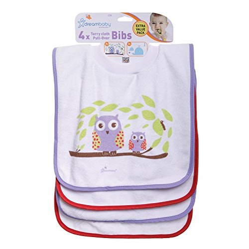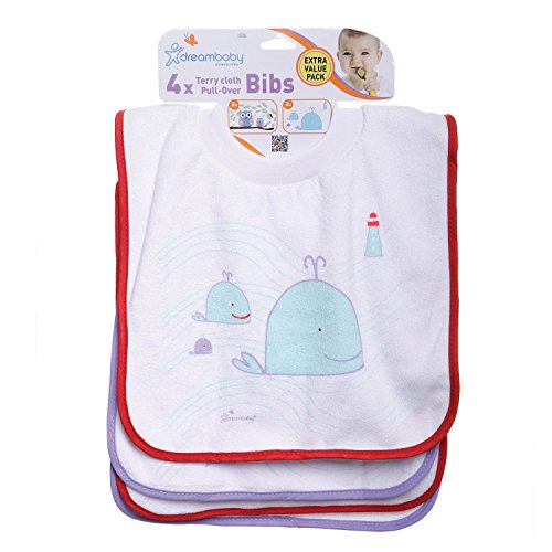 -. Binding : Baby Product -. Brand : Dreambaby -. Feature : Dreambaby terry cloth pull over bibs will let your toddlers enjoy food and discover learning how to eat it without you worrying about the mess / Featuring four farm designs / One size fits most / Comes in a pack of 4 -. Label : Dreambaby -. Manufacturer : Dreambaby -. ProductGroup : Baby Product -. ProductTypeName : BABY_PRODUCT -. Publisher : Dreambaby -. Studio : Dreambaby -. Title : Dreambaby Pullover Bibs
