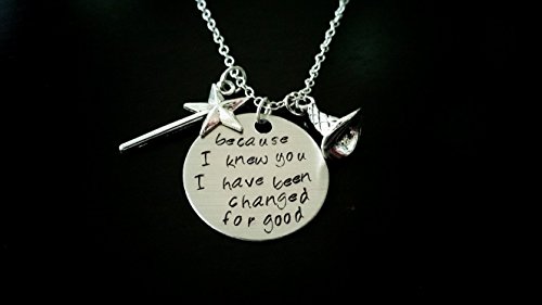 -. Title : Wicked Musical Elphaba and Galinda Inspired Handstamped Necklace