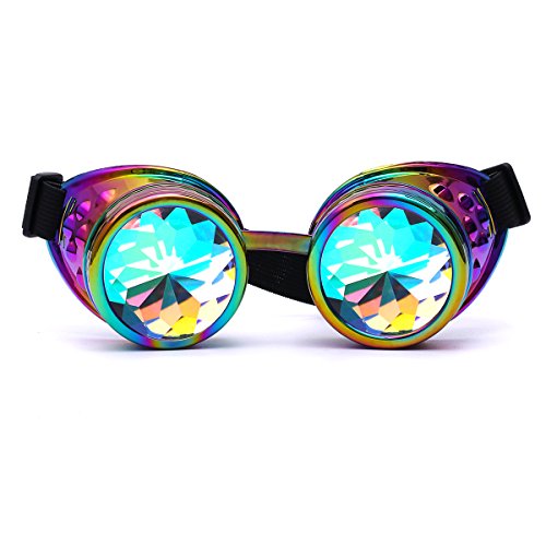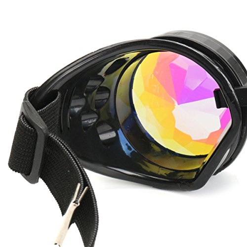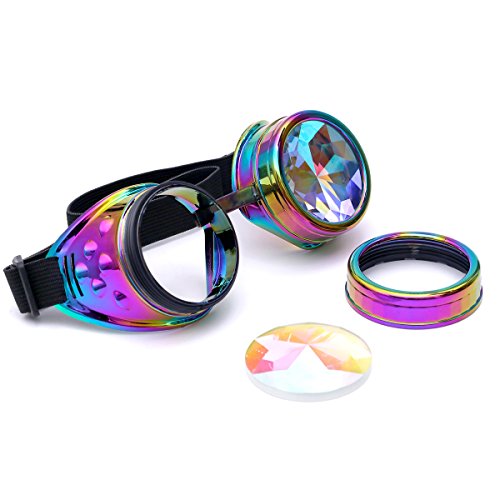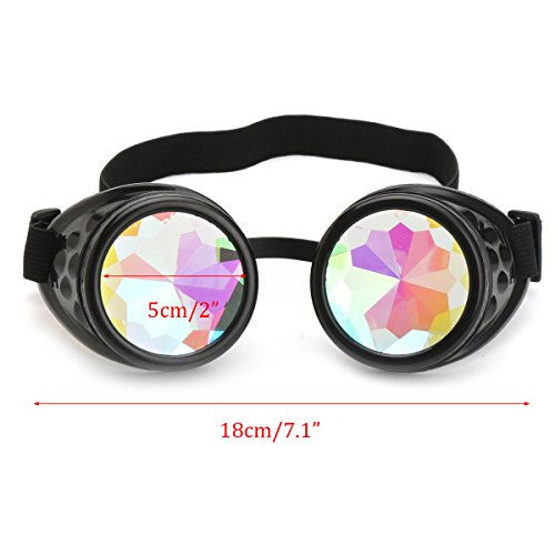 Winroor Kaleidoscope Rave Goggles Steampunk Glasses with Rainbow Crystal Glass Lens