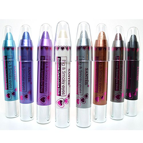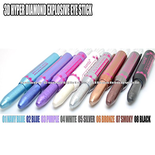 8 SANTEE SHIMMER EYE SHADOW STICK 3D HYPER DIAMOND EXPLOSIVE SMOKEY " 8 Full Colors in 1 Pack "