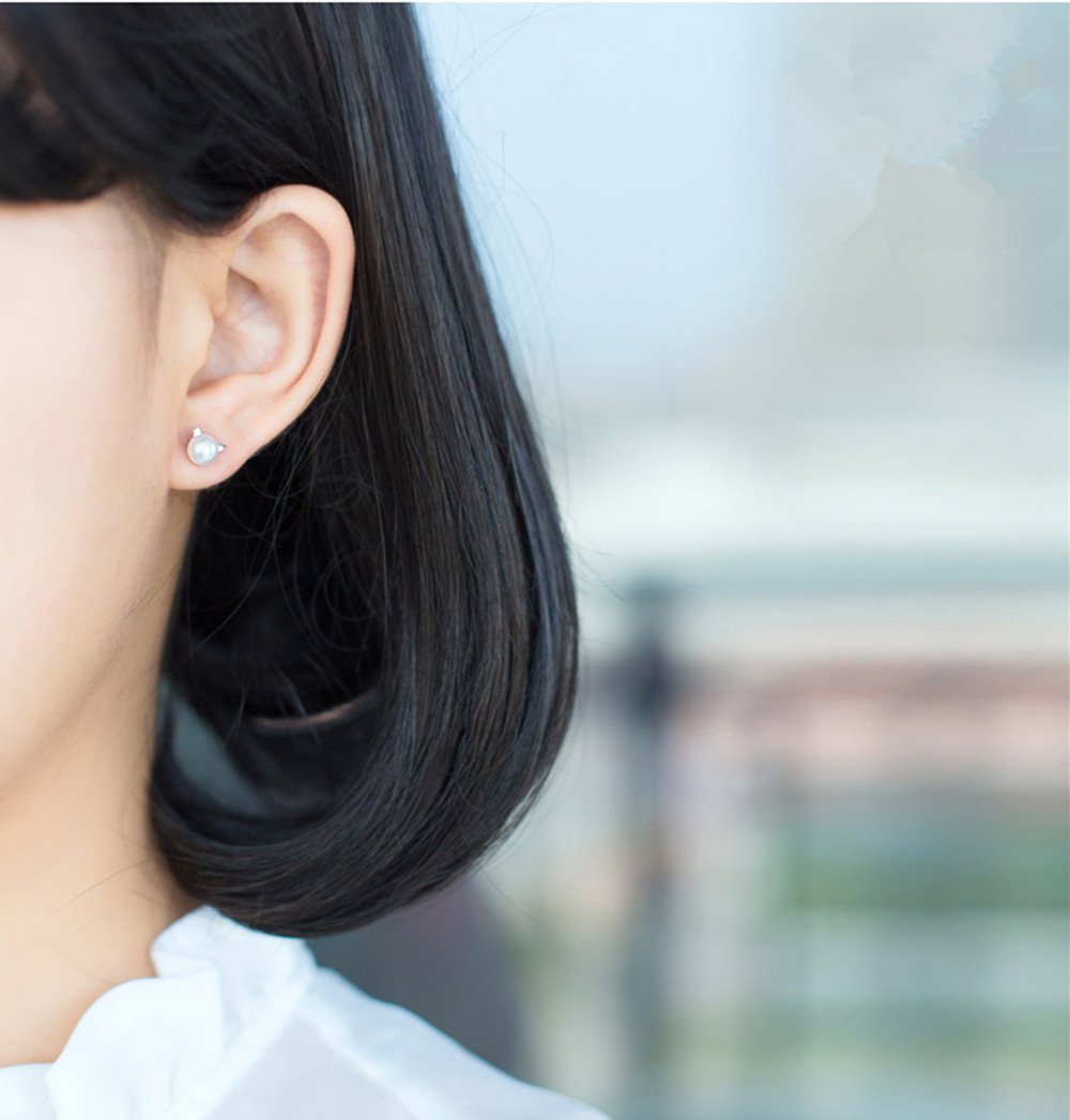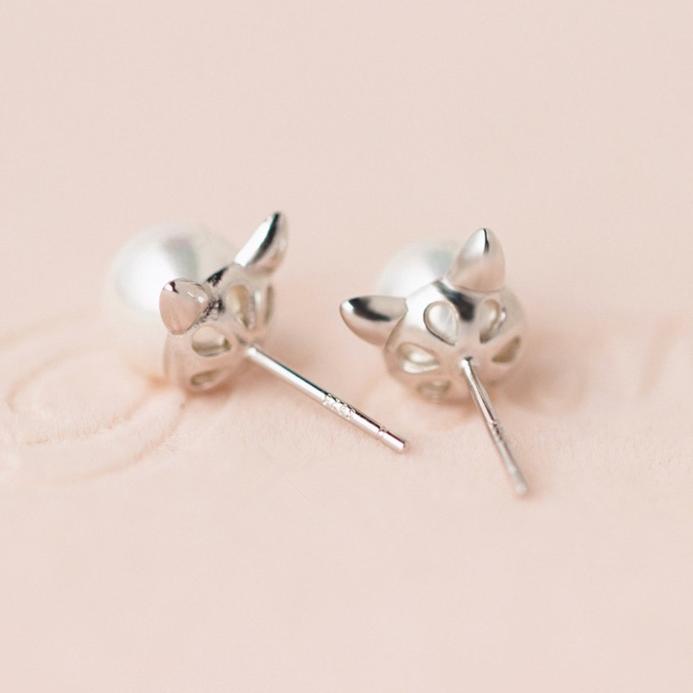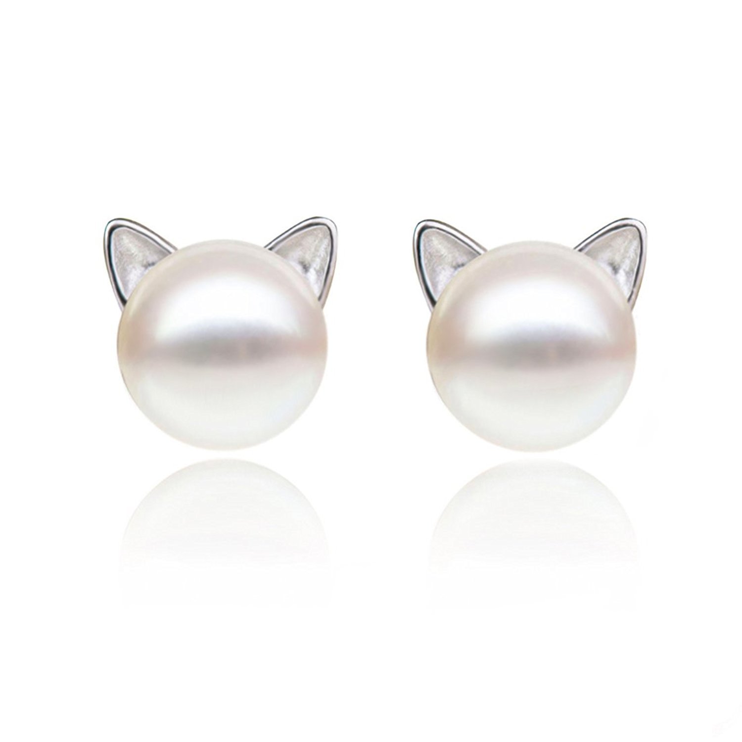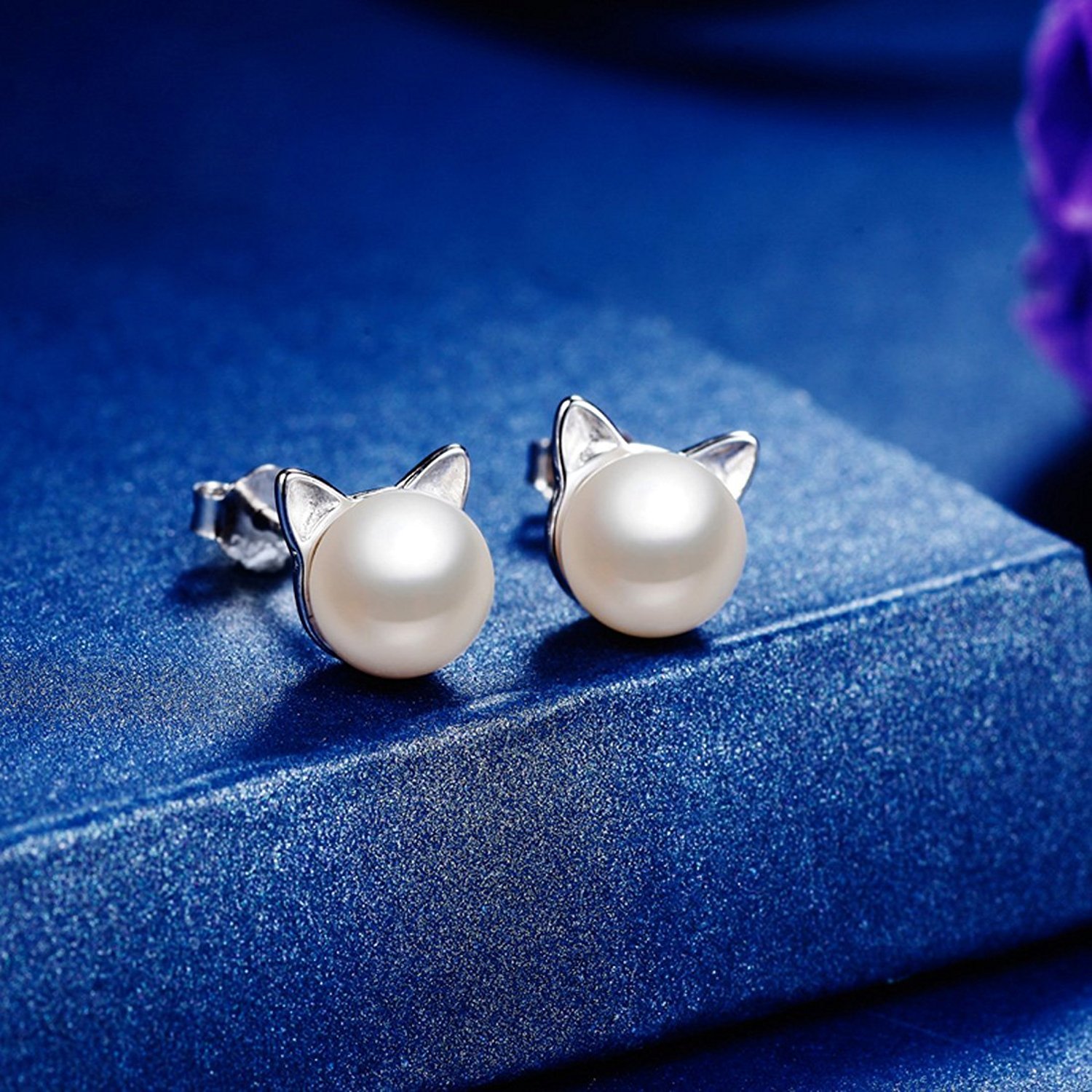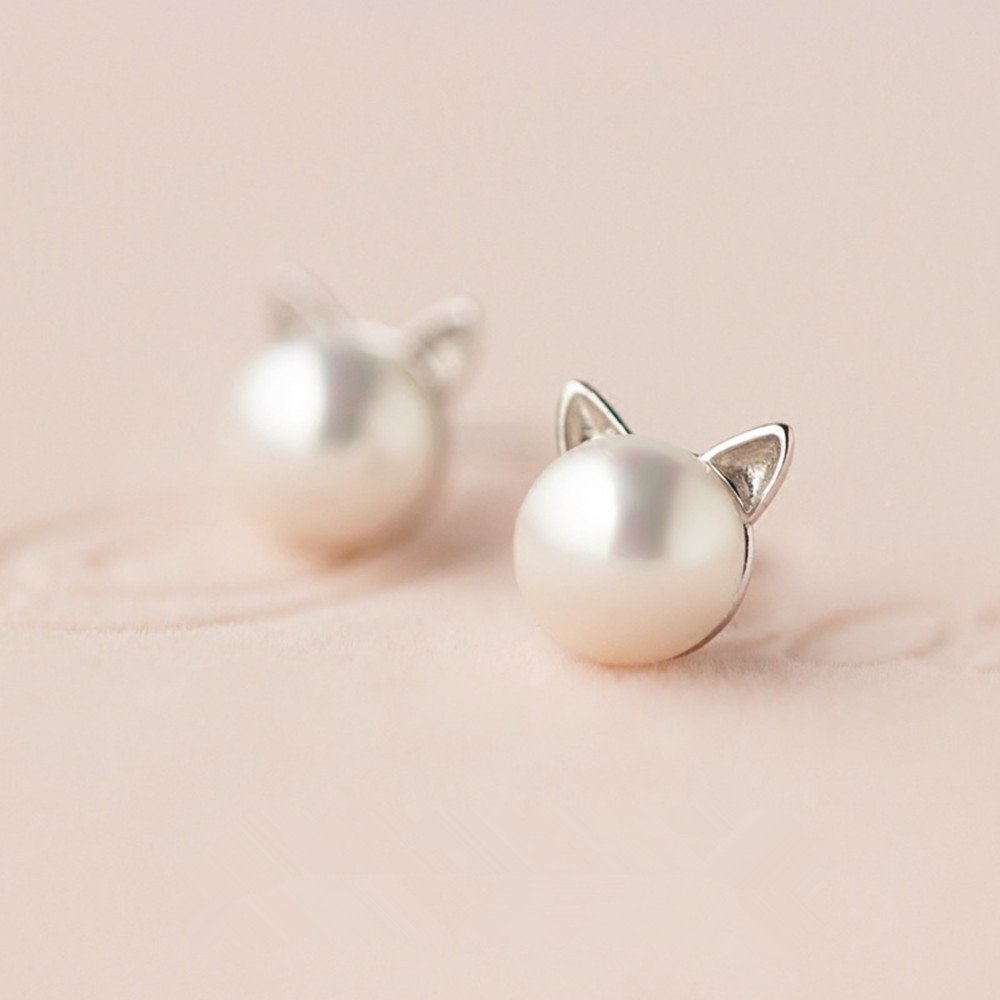 AngelaKiss cat-style freshwater pearl & silver 925 earring stud