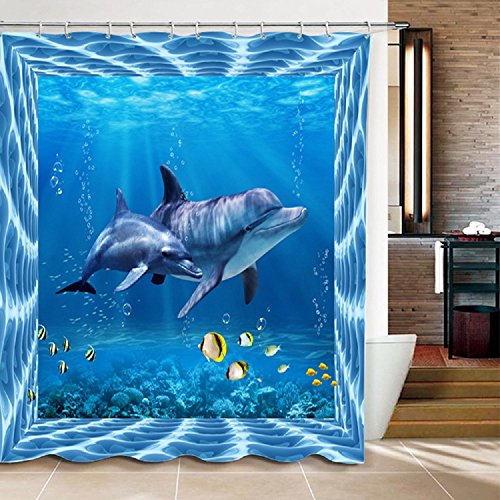 EZON-CH Waterproof Modern Good Mildew Resistance 3D 3D Style Design Sea World Dolphin Polyester Farbic Bathroom Shower Curtain(72X96IN)(Style 4)