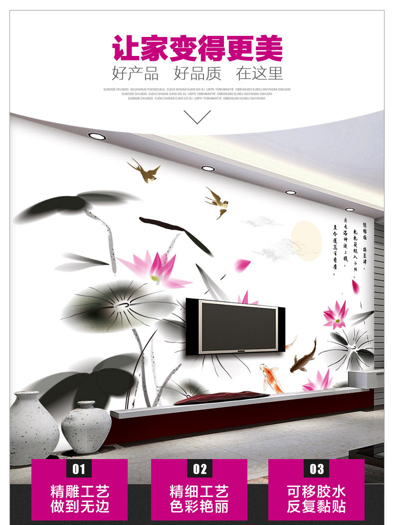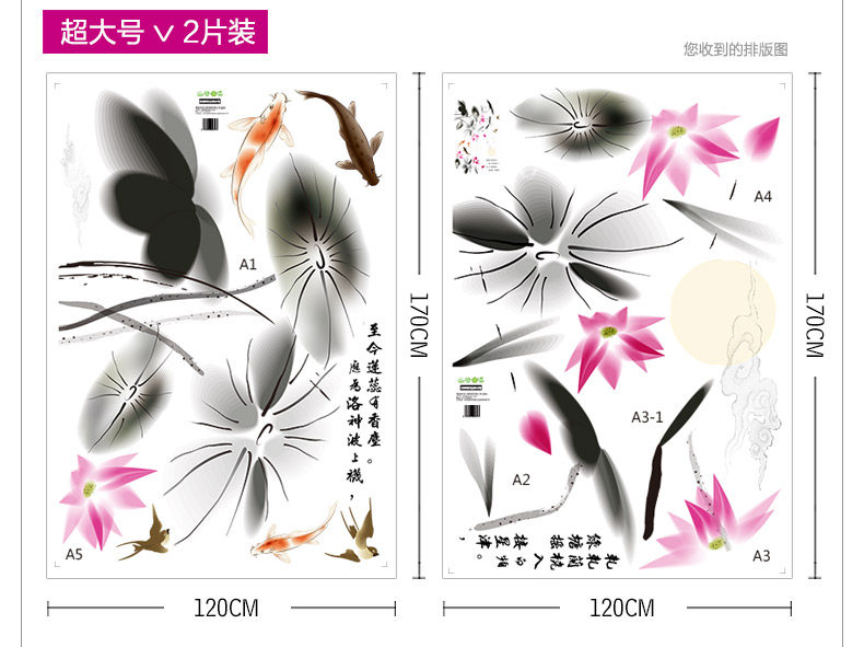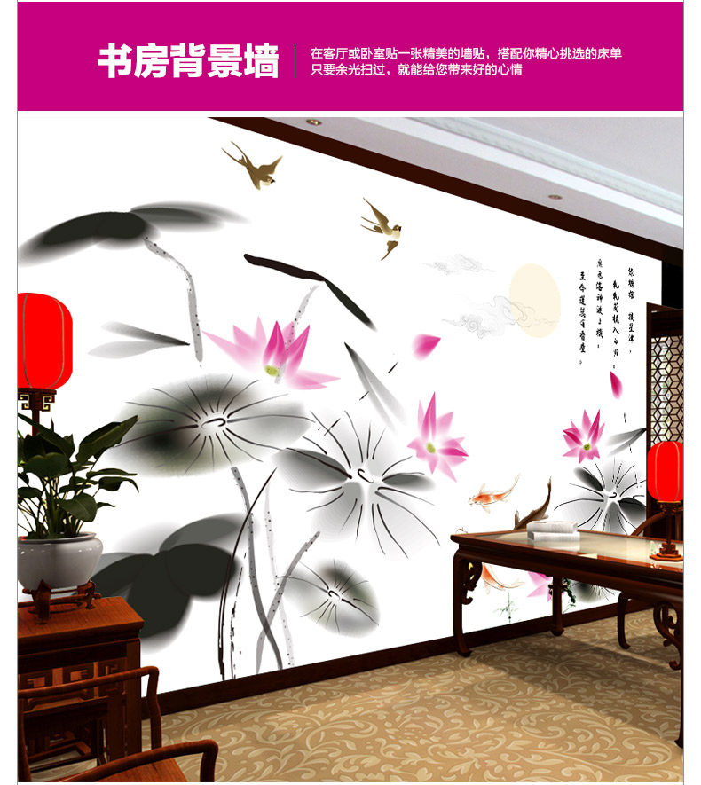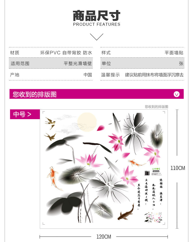 中国风水墨画墙贴画书房贴纸墙贴卧室贴纸电视背景墙装饰墙纸自粘