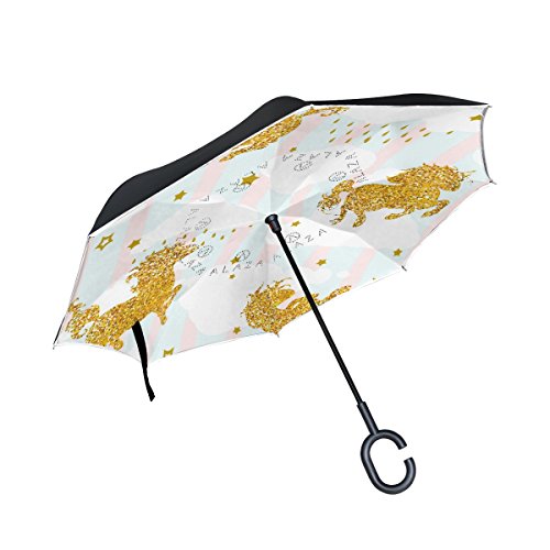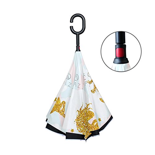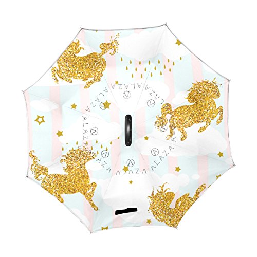 (AHOMY)/Accessories/Umbrellas/DIRECT FROM USA/AHOMY Gold Unicorn Horse Star Large Double Layer Inverted Umbrella Windproof UV Protection With...