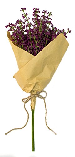 Amethyst Purple Faux Spray Pick Bouquet in Craft Brown Paper with a Bow - Dark Pink Magenta Berries Bush, 21 Inches