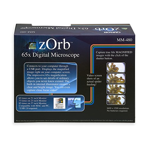 Carson zOrb USB Digital Computer Microscope with 65x Effective Magnification (Based on 21 inch Monitor), Surf Blue