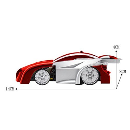 -. Feature : Multi-functional: This car has two motivation options. Not only it can be used as a wall climbing car, but also a regular remote car; Forward and Reverse, Turn Left/Right,360 Degree Rotating,and Stop with Brake Lights. / Special Features: Special vacuum feature that allows the car to drive vertically or "climb walls". The ultra lightweight car body coupled with a powerful suction fan, please do not drive it on hollow, non-planar, the track must be smooth or glassy; Auto shut-off helps conserve battery life. / Strong car body: Made of high quality materials, strong collision resistance; Adapted new materials, strong shockproof car body, help reduce the damage of falling by accident and prolong the service time; The Mini RC Car has a lightweight yet heavy duty body that won't break if it falls from the ceiling or wall. / Gravity-Defying: This Toy car can be drove on any smooth surface, such as Walls, Floors, Windows, even Ceilings. Fun time everywhere! / Super cool gift for kids to develops these skills: sensory, fine motor, gross motor, logical, creative, linguistic, emotional, communication and self-esteem.