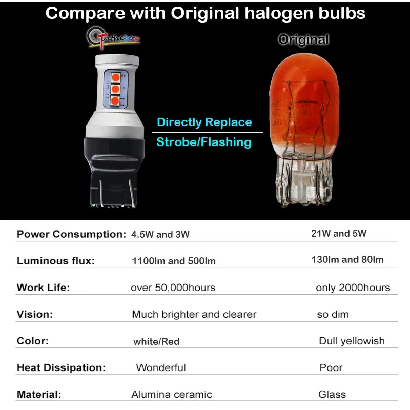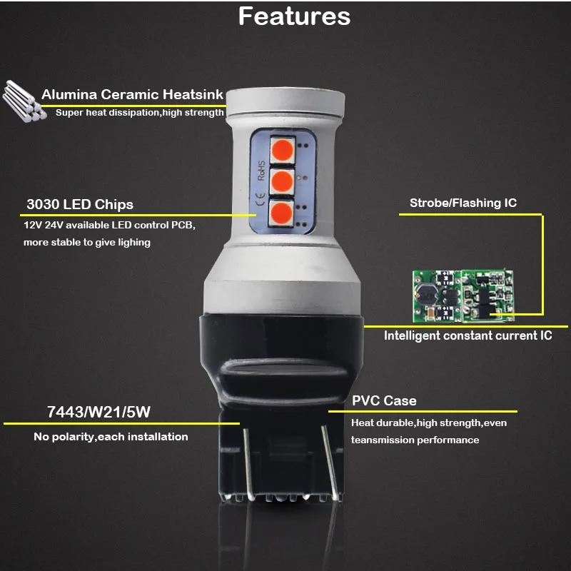 Product Name:Strobe/Flashing Enabled Red 15-SMD 7443/T20 LED Bulbs