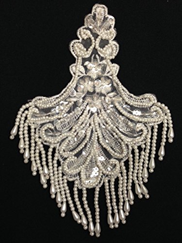 2 Pieces, Sequined and Fringe Beaded Appliqué, Great for Costumes, white,, 8"X5".