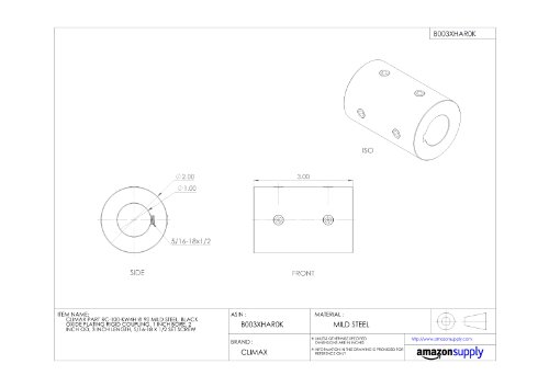 Climax Part RC-100-KW4H @ 90 Mild Steel, Black Oxide Plating Rigid Coupling, 1 inch bore, 2 inch OD, 3 inch length, 5/16-18 x 1/2 Set Screw