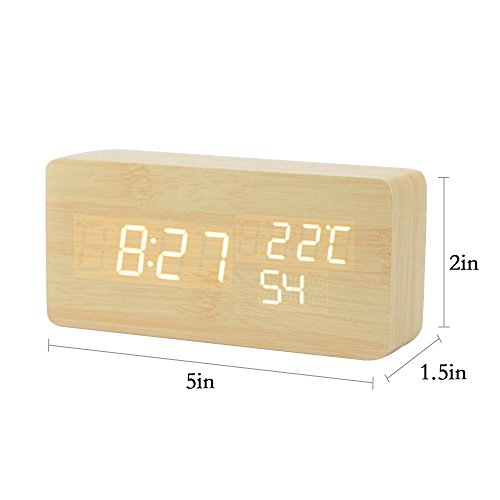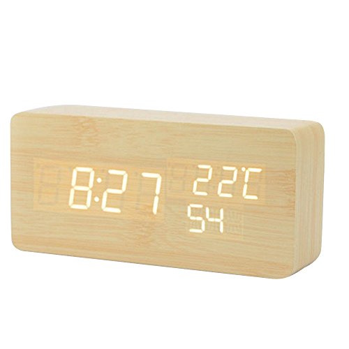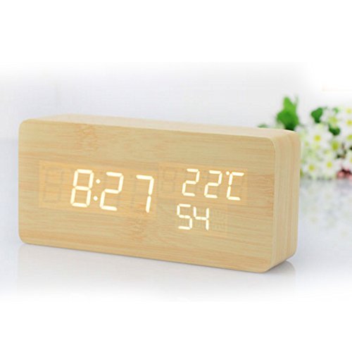 Studio : ieasycan Publisher : ieasycan Binding : Kitchen Product Description Main Features: - Novel wooden digital rectangle clock - Numeral LED display light and the brightness will adjust automatically - Functions: Calendar, clock, alarm, thermometer, sound control - Time, temperature and date recycling show - In normal state, hour, minute, seconds / temperature are displayed, 2 display modes are free to choose - Round angle, safe for the families that have baby and you needn't worried the sharp angle will hurt your little child - Powered by supply DC 6V USB cable or 4 x 1.5V AAA battery ( batteries are not included ) - Three press keys easy to operate ( SET, UP and DOWN ) - Temperature displays unit degree Celsius / degree Fahrenheit which can switched. There are a 12 hours system and a 24-hour system, which can switch between 12 hours and the 24 hours, the 24 hour system is defaulted 0