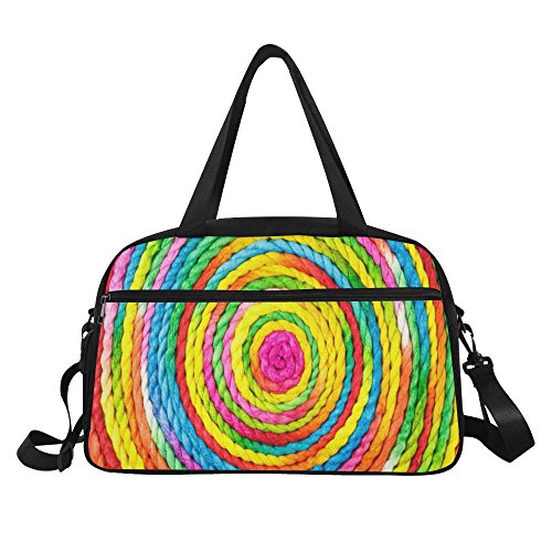 (InterestPrint)/Accessories/Luggage, Bags Travel/DIRECT FROM USA/InterestPrint Travel Duffel Tote Bag with Shoes Compartment for Women Men Colorful Rope Circle