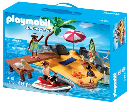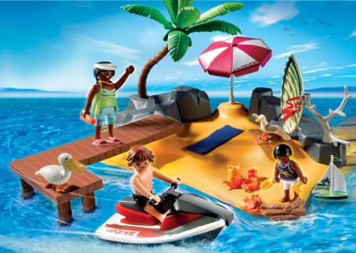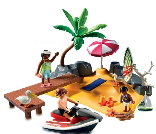 -. Feature : Ride a watercraft, dig in the sand and relax in the sun on the Playmobil Holiday Island / Playmobil is the largest toy manufacturer in Germany / Figures can bend, sit, stand and turn their heads / Encourages children to explore and learn while having fun / Includes 3 figures, island with dock, watercraft, surfboard, beach umbrella, palm tree, beach towel, beach toys, pelican and other accessories