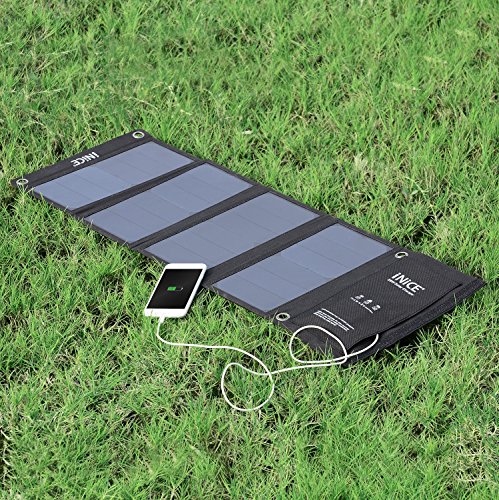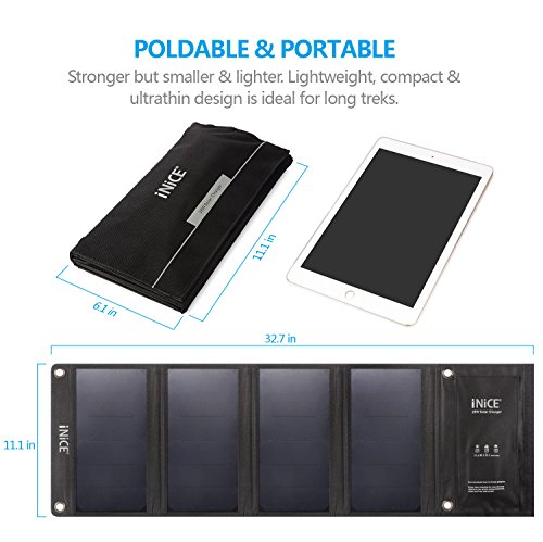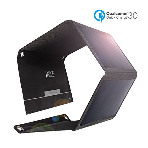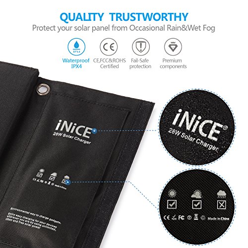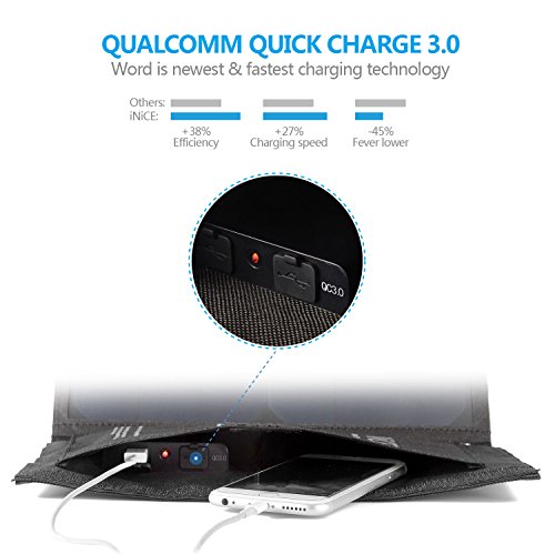 iNiCE Foldable Solar Portable Battery Charger 2-port USB with QC 3.0 Quick Charger Output for Cell Phone,Camera and More(Foldable 28W, Black)